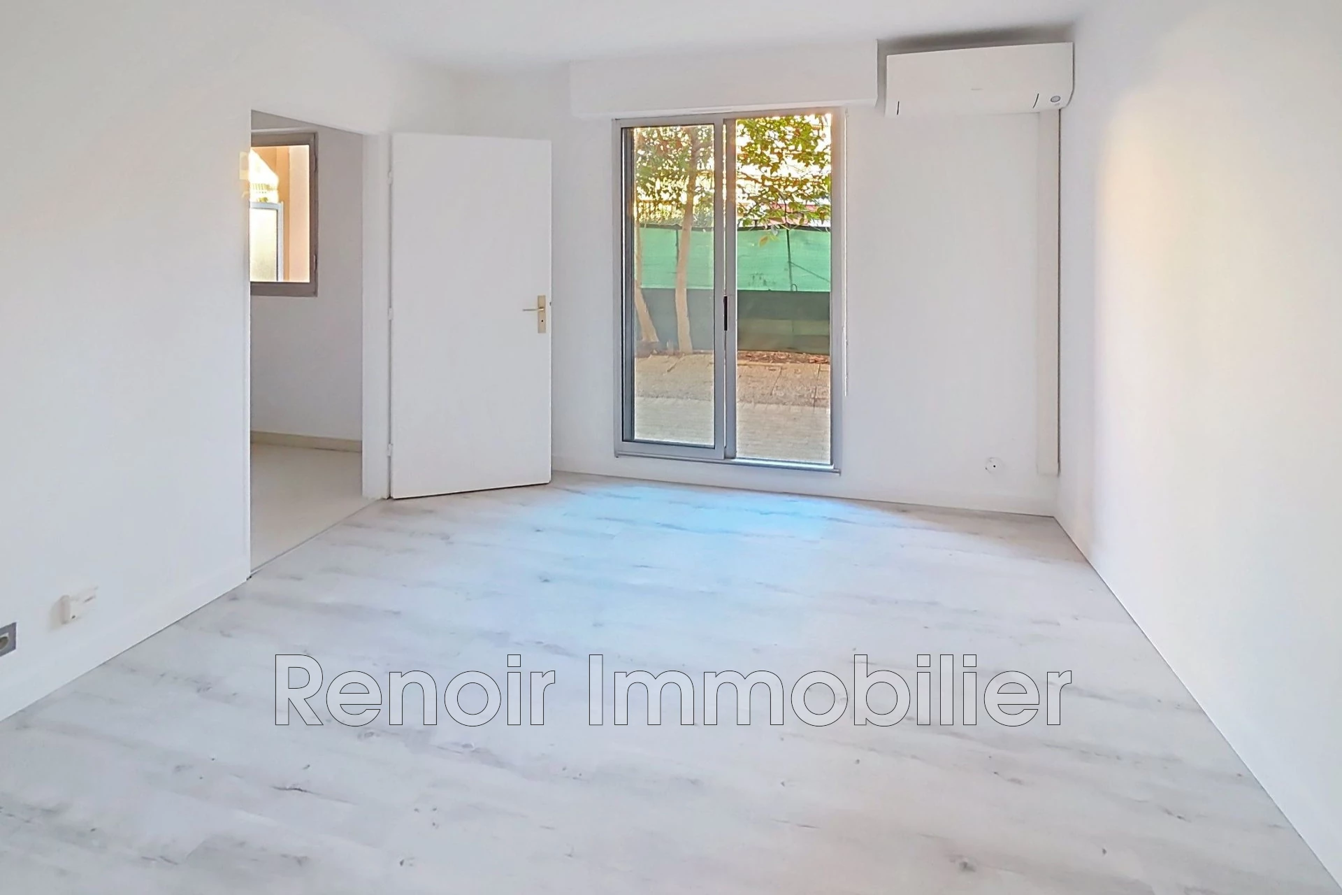 Hippodrome district, just steps from the sea and shops, in a secure residence, a very charming studio opening onto a ground-floor terrace with a beautiful separate kitchen, bathroom, and wooden floors, all fully renovated.